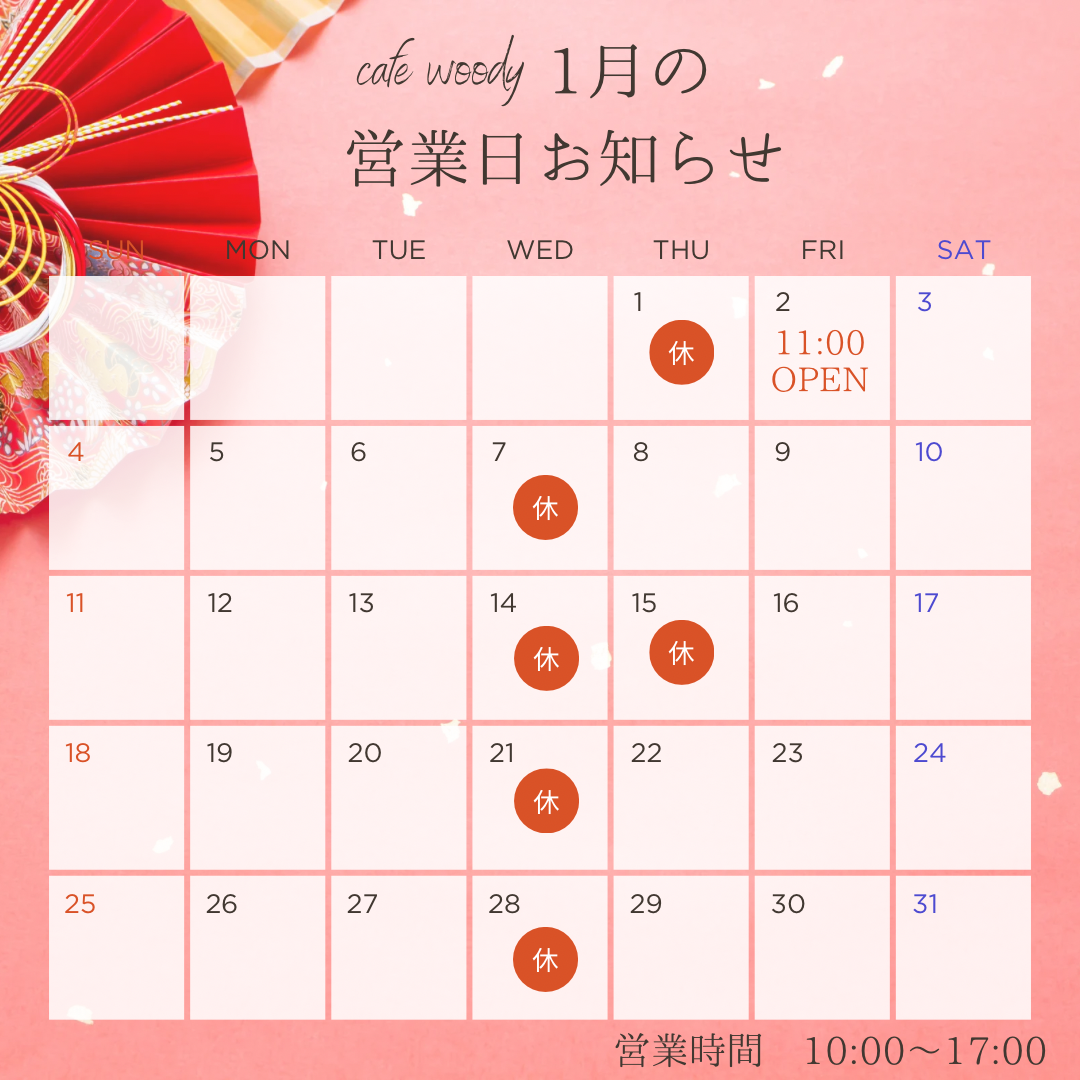 ベージュ シンプル 2026年1月 営業カレンダー Instagram投稿 正方形 – 1