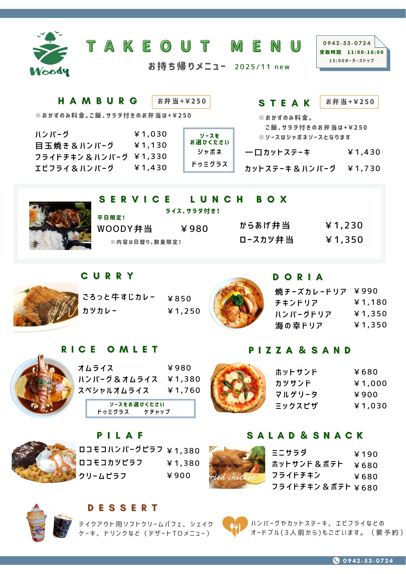 WOODYは筑後市のカフェ&レストラン、100%黒毛和牛と国産豚肉を使用した絶品ハンバーグにパフェやオリジナルカフェをどうぞ。